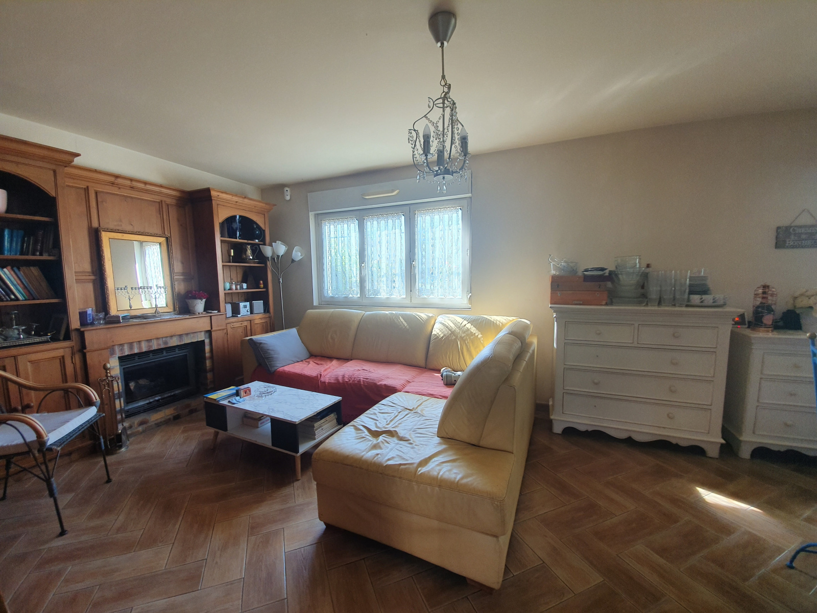 Maison semi-individuelle des années 60 de 96 m2 habitables comprenant au rez-de-chaussée : une belle entrée, un vaste salon/salle à manger de 27 m2, une cuisine semi-ouverte ouverte sur la terrasse et le jardin, un placard, un wc.