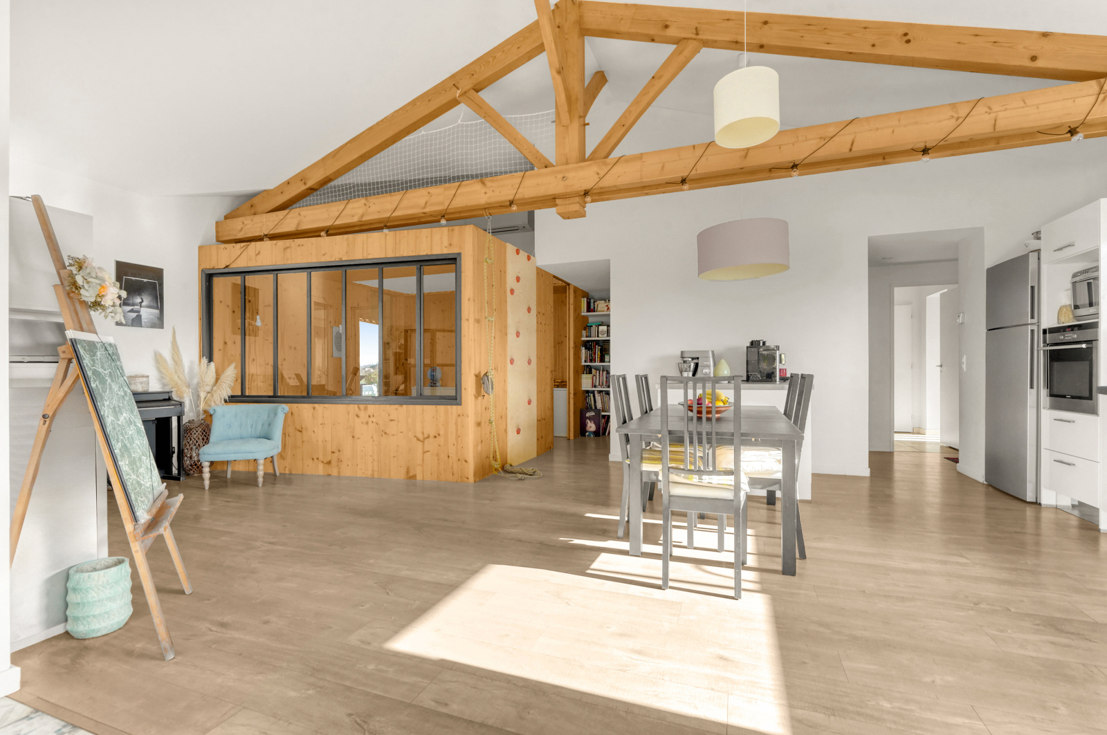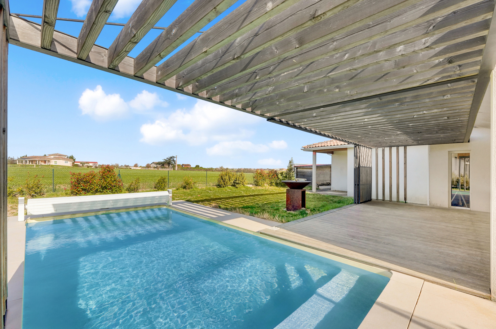 Mondonville (31700)En exclusivité, l'agence Immobilière Tolosane a le plaisir de vous présenter cette ravissante villa individuelle d'architecte de plain-pied en parfait état. Construite en 2014, cette magnifique maison d'une surface habitable de 162 m2 se compose d'un entrée avec placard, d'une vaste cuisine équipée avec espace repas, un salon ouvert par de larges baies vitrées à galandage sur l'extérieur avec son poele à bois Focus, un bureau, 4 belles chambres dont une suite parentale avec sa salle d'eau et son dressing, une salle de bains, 2 wc, une buanderie, un cellier et un vaste garage isolé de 36 m2. A l'extérieur, vous profiterez de vos soirées d'été dans un beau jardin sans vis à vis avec piscine de 7*3,60 et admirerez la vue sur la campagne et la forêt, installés sur une belle terrasse en bois avec pergola. Une maison calme et lumineuse avec tout le confort moderne située dans un cadre verdoyant à découvrir sans tarder ! Aéroport Toulouse/Blagnac à 15 minutes.