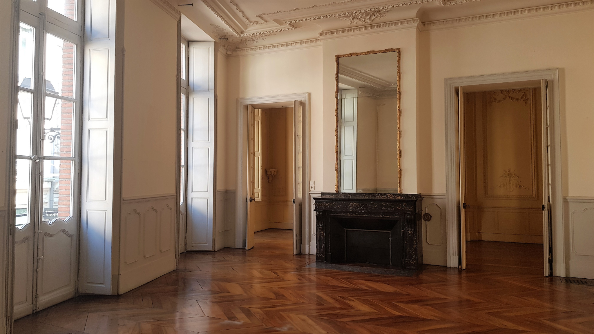 Toulouse (31000)Entre la Place St Etienne et la Place St Georges, dans un bel hôtel particulier en excellent état, vaste appartement traversant de caractère (parquets, plafonds, moulures et cheminées décoratives) d'une surface habitable de 212 m².