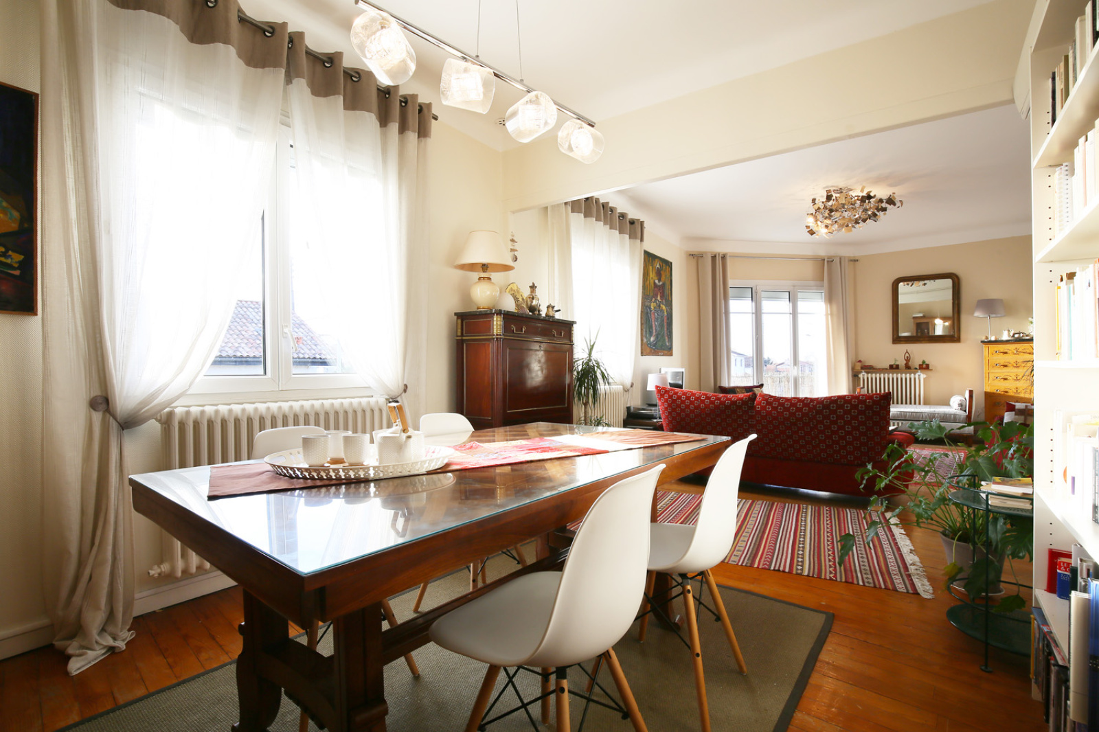 Jolie maison individuelle en parfait état de 161 m2 habitables répartis en 7 pièces principales sur 2 niveaux et comprenant, une entrée, un vaste salon/salle à manger parqueté de 37 m2 donnant sur un balcon exposé Sud/Ouest, une cuisine entièrement équipée avec espace repas, 4 belles chambres, un bureau, une salle de bains, une salle d'eau, une lingerie et 2 wc.