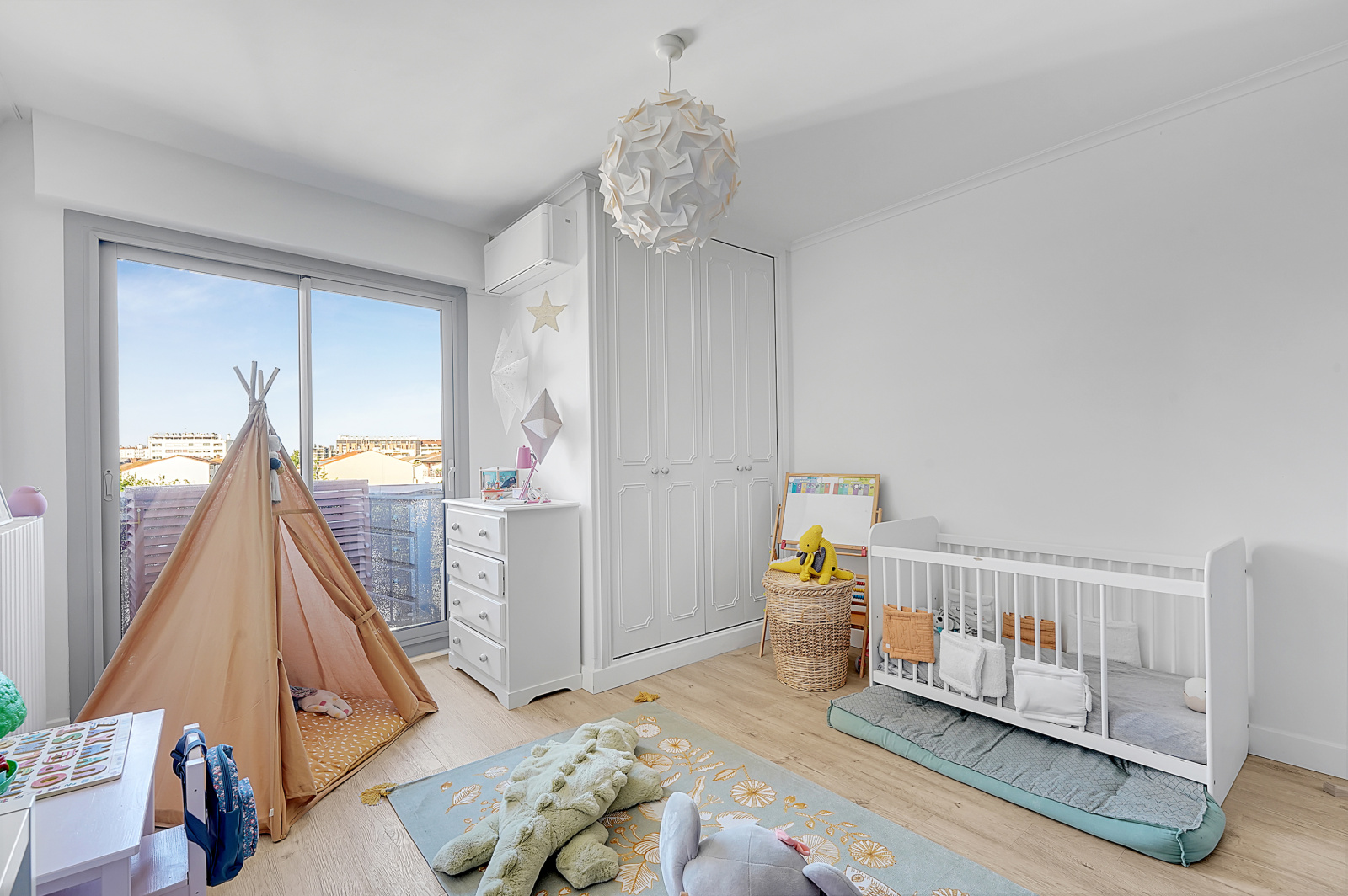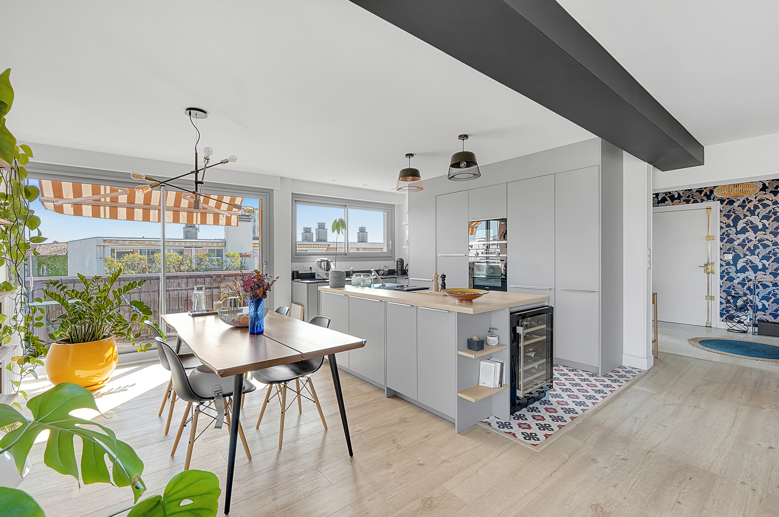 Appartement très calme et lumineux de type 4 d'environ 110 m² entièrement rénové avec goût en 2019. Une belle entrée avec placards ouvre sur un vaste salon/salle à manger avec cuisine entièrement équipée ouverte de 46 m², une suite parentale avec la chambre, un dressing intégré, une salle d'eau et un wc indépendant, deux belles chambres avec placards, une salle d'eau avec wc.